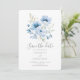 Blaue florale Wasserfarbenhochzeit speichern Sie die Datumskarte. Einfach den Text ändern.