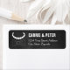 Bowties and Pearls Hochzeitsdesign wurde von Eggplant und Lila erstellt. Dieses moderne Design umfasst eine Perlenkette, eine Bugs-Krawatte und eine lustige, weiße Typografie im beliebten Chalkboard-Stil.