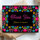 Mit dieser eleganten Fiesta Wedding Dankeschön-Card bedanken Sie sich bei festlichen Flairs. Mit lebhaften, mexikanisch inspirierten Blumen in Rot, Orange, Rosa und Gelb, vereint das Design den fröhlichen Geist eines Fest und bewahrt dabei eine raffinierte, elegante Touch. Feine Details und eine anmutige Typografie harmonieren die kühnen Farben und schaffen eine perfekte Harmonie von Feiern und Raffinesse. Ob nach einer lebhaften Hochzeit in Urlaubsort oder einer bunten Feier in der Heimatstadt, diese Dankeschön-Karte bietet Ihnen einen herzlichen und stilvollen Weg, Ihre Wertschätzung zu zeigen.