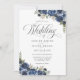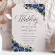 Fügen Sie Ihrer Hochzeit eine Touch zeitloser Eleganz hinzu, mit dieser wunderschönen Einladung mit marineblau blauen Aquarellfloralen und anmutiger Kalligraphie. Ideal für Paare, die ein klassisches und dennoch künstlerisches Design wünschen, besticht diese Einladung durch Romantik und Eleganz. Die sanften Blumenakzente und die fließende Schrift schaffen ein raffiniertes und einladendes Aussehen, ideal für Hochzeiten in jeder Jahreszeit. Beeindrucken Sie Ihre Gäste mit diesem atemberaubenden und unvergesslichen Stück.