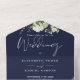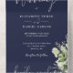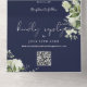 Hochzeit von Navy Blue Greenery QR Code Monogram All In One Einladung