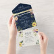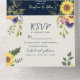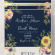 Hochzeit von Navy Blue Rustic Sunflower All In One Einladung