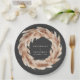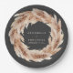 Moderne böhmische natürliche Pampas Gras Hochzeit Tag Party Teller. Atemberaubender, eleganter Drehtext und auf Trend botanisches Blattwerk. Auf dem Trend schwarze Backerfarbe.