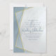 Diese einfache, moderne, geometrische Einladung zur Hochzeitsfeier bietet ein dustes blaues Thema mit kalligraphischen Elementen, asymmetrischen goldenen Rahmenakzenten und Marmortextur - von katz_d_zynes