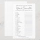 Dieses Girly und Niedlich Coquette Style Brautparty Game - Word Scramble. Fügen Sie Ihrem Brautparty eine lustige Aktivität hinzu mit diesem klassischen Spiel, bei dem Sie versuchen, eine Liste von Hochzeitswörtern und Lieben zu entschlüsseln. Es ist ein spielerischer Weg, um jeden behalten, der unterhalten wird, während er die zukünftige Braut feiert. Das Design zeichnet sich durch einen weißen Hintergrund aus, der durch die Verwendung von handgeschriebenen, dunkelgrauen und klassischen Serif-Schriftart ein minimalistisches Aussehen garantiert. Während die Schriftart dunkelgrau sind, verleiht das Design einen schwarz-weißen Gesamteindruck, aber eine elegante, weichere Touch. Die Typografie verleiht dem Coquette Charme, indem sie anmutige Schrift mit zeitlosem Serifentext für einen femininen und stilvollen Look verbindet. Vollständig anpassbar, können Sie die Wortgruppen, Schriftart und Hintergrund bearbeiten, um Ihrem Brautparty-Thema zu entsprechen. Diese Aktivität verleiht jedem Fest eine süße und einnehmende Touch.