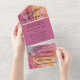 Blume zur Wasserfarbe, Hochzeit. Alles in einer Einladung. Soft überlappende Farbtöne eines Regenbogens von Farben. Alle Designelemente können auf beiden Seiten der Einladung bearbeitet (verschoben, verändert, gelöscht, dupliziert, gedreht usw.) werden. Schenken Sie sich die Gelegenheit, sich zu entspannen und sich für Ihren Hochzeitstag zu begeistern. Personalisieren Sie, indem Sie Text löschen und eigene Wörter hinzufügen. Verwenden Sie Ihre Lieblingsfarbe, Schriftart und Stil. Hochzeit All-in-One Einladung oder Verwendung für jede Feier! Stil: All in One Wedding Invite Personalisierte All-In-One-Einladungen sind eine einzigartige Kombination aus beidem, eine schön bedruckte individuelle Einladung mit einer leicht zu reißen perforierten UAWG Postkarte. Und sie sind so einfach zu bedienen! Man falte einfach, dann Siegel die Rückklappe mit den drei beiliegenden Klarkleben, und Post. Und wenn Ihre Gäste Ihre persönliche Einladung erhalten, reißen sie einfach die perforierte RSVP Karte ab und lassen sie in der Mail an Sie zurück! Abmessungen: 5,6" x 4,5" gefaltet, 5,6" x 12,125" entfaltet leicht zu lösen 5,6" x 4,25" perforierte UAWG Postkarte; qualifiziertes USPS Postkartenformat Kein Umschlag erforderlich für den Versand - Siegel und Senden! Zwei hochwertige Papierkarten-Vorräte zur Auswahl! Zwei Druckmöglichkeiten: Standard und High-Definition Beinhaltet drei klare runde Aufkleber zum Siegel-Papiertyp: Matte A classic, rundum Papier mit natürlichem Flair und unbeschichteter Matte; unsere Standard Matte steht für den Test der Zeit. Elegant und unaufdringlich, der Farbdruck ist sanfter und subtiler. 17,5 pt Dicke / 120 lb Gewicht / 324 GSM Leicht weißes, unbeschichtetes mattes Finish mit einem Egoshell Texturpapier lässt sich leicht beschreiben und wird in den USA hergestellt und gedruckt