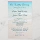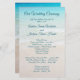 Die Seeheirat, Strandzeremonie Programm mit einer individuellen Formulierung auf einer Seite. Dieses Papier wurde für eine einfache Küstenveranstaltung erstellt und bietet drei Größen und eine Auswahl an Matte, Satin, Filz oder anderem Papier. Hintergrund Bild ist Sand und surfen mit blauem Wasser am Anfang der Seite. Eleganter Script-Schriftart ist dunkelblau. Reverse enthält auch ein Strandbild mit hellblauem Wasser und glattem Strand Sand.