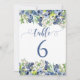 Wasserfarbene elegante marineblaue Blumen mit Heidelbeeren Hochzeitsfeiern Tischnummern. Blueberry blumengeschmückte Tischnummern.
