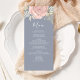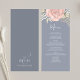Dieses Design besticht durch eine elegante, moderne, einfache Hochzeitskarte mit eleganter Kalligraphie-Schrift, eine schlichte Rosa Rosa, Blumen und Grün, einen blauen Hintergrund und die perfekte Dekoration des Empfangs
