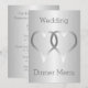Hochzeitsmenü silberfarbene Herzen Design. Sie können dieses silberfarbene Hochzeitsmenü mit Ihren Hochzeitsdetails anpassen. Sollten Sie Hilfe bei der Anpassung benötigen, kontaktieren Sie uns bitte über den Link auf dieser Seite. Silberfarbene Herzen entwerfen personalisiertes Hochzeitsmenü