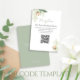 Mit dieser eleganten botanischen Hochzeitsempfangskarte mit modernem QR-Code verbessern Sie Ihr Hochzeitsgeschenk und gelangen so bequem auf unsere Hochzeitswebsite. Diese mit floralen Aquarellakzenten dekorierte Einlegekarte zeigt klassische Blume und ein zartes Grün, das perfekt dazu geeignet ist, Ihrem besonderen Tag eine raffinierte Touch hinzuzufügen. Die Kalligraphie-Schrift und die grüne Typografie fügen sich wunderbar zusammen, um ein zeitloses, aber modernes Design zu schaffen, ideal für Paare, die eine stilvolle und funktionelle Ergänzung ihrer Hochzeitssuite suchen.