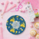 Königliches Blau, mittleres blaues weißes, gelb und grün ist eine neue und starke Kombination der Farben für eine vibrierende, schöne Brautpartypalette. Leicht besonders angefertigt unter Verwendung der Schablonenfelder für Ihre spezielle Braut. Sauber. Einfach. Modern. Minimalistischer Entwurf für maximale Auswirkung. Gruppiert sich handgemalte Zitronen, Zitrone, Zitrone blüht und das Blätter, das für einen neuen Landgarten-, rustikalen dennoch eleganten und schönenhochzeits-Empfangs-Dekorentwurf geworfen wird. Typografieartskript-Kalligraphietitel liest, "unsere Hochzeits-Feier." Copyright Audrey Jeanne Roberts, alle Rechte vorbehalten.