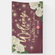 Begrüßung Willkommensbanner Vorlagen - Elegante weiße, hübsche Hydrangea-Blume und String Lights auf Burgundy Red Background. Ein perfektes Design für Ihren großen Tag! Alle Textstile, Farben, Größen können an Ihre Bedürfnisse angepasst werden.