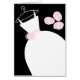 Bridal-Designkarte mit hübschem Design in Rosa-, Schwarz- und Weißtönen, mit einem stilisierten Hochzeitskleid auf einem Hanger, der von einem Bouquet auf der Vorderseite begleitet wird, und einem hellrosa Innenbereich. Ein individualisierbares Design für Sie, um mit Ihrem eigenen Text, Bildern und Ideen zu personalisieren.