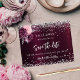 Ein modernes und elegantes Save the Date für eine Hochzeit. Ein tiefburgundischer Hintergrund mit Blume und Imitaten verziert silberne Konfetti. Personalisieren und fügen Sie ein Datum und Namen hinzu. Der Text: Save the Date ist mit einem großen angesagten, handgeschriebenen Stilskript geschrieben. 1 Blatt = 1 Einladung mit Druckkante bis Kante.
