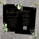 Diese elegante botanische Blätter aus schwarz und goldfarben können mit Ihren Informationen in schicker Typografie personalisiert werden, mit Ihren Angaben zur Hochzeitswebsite und Ihrem QR-Code auf der Rückseite. Entwickelt von Thisisnotme©