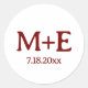 Siegel Sie Ihre Hochzeitskuverts und Leckerei-Taschen mit diesem minimalistischen Rot-Weiß-Aufkleber mit den ersten Initialen Ihres Verlobten und dem Datum Ihrer Hochzeit in einem eleganten Serif-Schriftart.