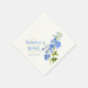 Schöne Delphinium Spikes bemalt blau feine Kunst botanische Hochzeitspapiere Servietten. Eine großartige, maßgeschneiderte Ergänzung zu Ihren Hochzeitstischen. Personalisieren Sie diese Hochzeitsnapkins mit Ihren Braut- und Vorzeitsnamen und dem Hochzeitsdatum. Ideal für Delphinium-, Blau- oder Gartenhochzeiten. Einzigartiges Design und originale pan-Aquarellmalerei von Sarah Trett.