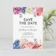 Save the Date Hochzeitseinladungen mit wunderschönen, hellen Aquarellfarben-Blume, fügen Sie Ihre Website-Adresse oder andere Details auf der Rückseite (optional). © Mini Moi Prints