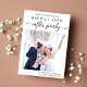 Moderne Ankündigung Datum freihalten für Ihren Post-Ever oder privaten Hochzeitsempfang mit Ihrem Foto, "Save the Date für unser glückliches Ever After Party" in einer Mischung aus einfacher Typografie und einem trendigen Drehbuch mit Swashes und Ihren Vornamen, Empfang Datum und Ort. Geben Sie auf der Rückseite weitere Details an und fügen Sie Ihre Namen in ein signaturartiges Skript ein.