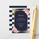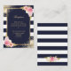 Elegante marineblaue, blau-weiß gestreifte Hochzeitskarte mit blauen, rosafarbenen Blume und vergoldetem Grün. Matching-Elemente verfügbar.
