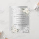 Für eine elegante und romantische Hochzeit. Ein silbernes Imitat mit weißem Elfenbeinflor, Rose und weißer Spitze. Personalisieren Sie Ihre Namen und Details und fügen Sie diese hinzu.