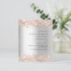 Ein Imitat silber aussehender Hintergrund. Dekoriert mit Rose Gold Konfetti. Personalisieren Sie Ihre Namen und Empfang-Daten und fügen Sie diese hinzu. 1 Blatt = 1 Einladung mit Druckkante bis Kante.