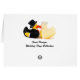Zwei niedliche gelbe Gummienten gekleidet als Braut und Bräutigam. Top Hut und Schwänze mit Perlen. Zwei küssende Enten-Karte mit individualisierbarem Text für Ihre eigene Nachricht, Namen, Save the Date oder fügen Sie Ihr eigenes Bild hinzu.