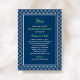 Diese marineblauen und kelgrün-nautischen Hochzeitsessen-Probe-Einladungen sind prächtig und elegant mit einem Yachtschiff-Motiv, einem zeitgenössischen weißen Trellis-Grenzmuster und einem modernen handgeschriebenen Stil. Beachten Sie, dass die Text- und Yachtfarben mit der Funktion "Anpassen" geändert werden können.