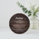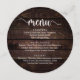 Modernes, rustikales Hütte Dunkelbraunes Holz, Rundplatten Formen, Abendmenü für Hochzeiten. Ein perfektes Menü für Ihren großen Tag. Sie können die Schriftart-Farben des Skripts ändern und den Menüinhalt und die Schriftart entsprechend Ihren Bedürfnissen ändern.