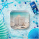 Eine leere Karte und eine Erholung auf einem Sandstrand, umgeben von Muscheln, Seestern und türkisfarbenem Meereshintergrund. Alle Texte können geändert werden.