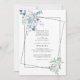 Dusty Blue Watercolor Blütenfarben Hochzeitsempfang. Dusty Blue back. Silbergeometrische Rahmen.