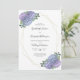 Dieses wunderschöne, elegante Boho Design besticht durch Aquarellbouquets mit Hydrangea-Blume in staubblauen, hellen Perwinkeln, Lavendel lila und lila, sowie Eukalyptus-Blätter und einen trendigen goldenen geometrischen Rahmen. Im Rahmen befindet sich der individuell anpassbare Text für Ihre besondere Veranstaltung in beliebter Typografie. Die Rückseite der Karte weist einen pastellfarbenen, staubblauen Hintergrund auf. Sie können dieses Element personalisieren, indem Sie den Text in der Vorlage ändern.