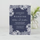 Einfach und zeitlos. Ein zarter, weißer Spitz-Applique umrahmt diese atemberaubende Hochzeitsreise. Die Probe wird mit einem klassischen marineblauen Hintergrund gezeigt. Die Hintergrundfarbe kann so geändert werden, dass sie mit Ihrem Hochzeitsthema abgestimmt wird.