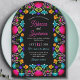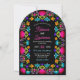 Die lebhafte mexikanische Fiesta-Bogen-Hochzeitsfeier besticht durch Farbe und Feiern und erweckt den fröhlichen Geist eines lebhaften Festes. Dieses Design mit kühnen, handbemalten Blumen in satten Fuchsientönen, Marigold, Türkis und Rot strahlt Wärme, Energie und kulturellen Charme aus. Intrikierte Blumenakzente und festliche Typografie schaffen ein spielerisches, aber elegantes Ambiente, das sich ideal für Paare eignet, die eine Hochzeit voller Farben, Musik und Liebe planen. Ideal für Sommerfeiern, Hochzeiten in Urlaubsort oder jeden, der seinen großen Tag will, um mit lebendigem Flair und festlicher Schönheit zu beginnen.