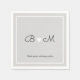 Weißer Rahmen mit eigenen Initialen und einem kleinen Herz Liebe auf hellgrauem Standardpapier-Serviette... mit individuellem Text "Danke, dass du mit uns gefeiert hast".