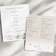Ein wunderschön gestaltetes Hochzeitsprogramm mit einer sanften Aquarelllandschaft mit ruhigen Grüntönen, zarten Bäumen, steilen Vögeln und weit entfernten Silhouetten. Die Front zeigt Ihre Hochzeitstage-Zeitleiste mit sechs individuell anpassbaren Zeitstempeln, während auf der Rückseite Platz für Ihre vollständige Liste der Hochzeitsfeiern und Zeremonie Details. Eine friedliche und elegante Art, Ihre Gäste durch Ihren besonderen Tag zu führen.