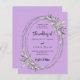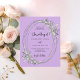 Ein Lavendelhintergrund. Die Einrichtung ist mit Grün und einem ovalen Rahmen gestaltet. Personalisieren Sie Ihre Namen und Details und fügen Sie diese hinzu. 1 Blatt = 1 Einladung mit Druckkante bis Kante.