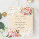 Für eine elegante und romantische Hochzeit. Beige, cremefarbene Einrichtung mit rosa und Rose-goldfarbenen Blumen, Rose und Spitzen. Personalisieren Sie Ihre Namen und Details und fügen Sie diese hinzu. 1 Blatt = 1 Einladung mit Druckkante bis Kante.