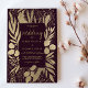 Hochzeitsaufenthalte in Bordeaux und goldblättrigem Blattwerk. Dieses elegante und stilvolle Golden Floral Einladung ist perfekt für jedes raffinierte und luxuriöse moderne Paar. Dieses Design eignet sich ideal für ein trendiges und elegantes Party-Event. Passen Sie dieses Design mit Ihrer Nachricht und personalisierten Informationen an. Alle Designs sind gedruckt.