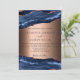 Eine moderne und trendige Hochzeitseinladung. Blau und Rose goldfarben, Marmorboden. Personalisieren und fügen Sie Ihre Namen und die Details.