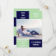 Navy Blau und Minze grün Block Hochzeit Speichern Sie die Date-Karte. Auf der Rückseite ist ein Muster mit breiten Bändern in Marineblau und Minzgrün.