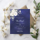 Für eine elegante und romantische Hochzeit. Marineblau, uneinheitlich gefärbter Hintergrund mit weißen Blumen und Rose. Personalisieren Sie Ihre Namen und Details und fügen Sie diese hinzu. 1 Blatt = 1 Einladung mit Druckkante bis Kante.