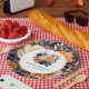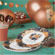Set für Ihre Hochzeit mit diesen atemberaubenden Tellern mit blühenden Marineblau-, Bronze- und Champagner-Blumenakzenten.