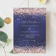 Ein marineblau blauer Hintergrund, die blaue Farbe ist ungleichmäßig. Dekoriert mit Rose Gold Imitat Glitzer. Personalisieren und fügen Sie Ihre Namen und Party-Details.