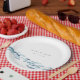 Hochzeitsfeier mit Blauer Wasserfarbe an der Küste Pappteller