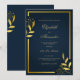 Luxuriöse marineblau und goldblättrig blühende Hochzeitseinladungen. Diese einfache geometrische goldene Foliage Hochzeitseinladung ist perfekt für jedes anspruchsvolle Mädchen. Dieses Design eignet sich ideal für ein trendiges und elegantes Party-Event. Passen Sie dieses Design mit Ihrer Nachricht und personalisierten Informationen an. Alle Designs sind gedruckt.