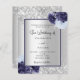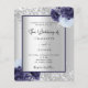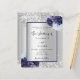 Imitate silber aussehender Hintergrund dekoriert mit marineblau und hellblauen Blumen, Blume und Imitate silberne Glitzer, Glitzern. Personalisieren und fügen Sie Ihre Namen und Hochzeitsdetails. Schwarze Buchstaben.