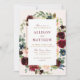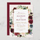 Ein goldenes Rahmen-Design mit einem hübschen bordeauxfarbenen Blumenkranz im Hintergrund. Die Farbe und der Text können nach Ihrem Hochzeitstil bearbeitet werden, Sie können die Textgröße, den Schriftart und die Platzierung ändern.
