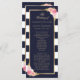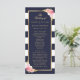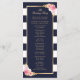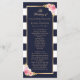 Elegantes marineblaues, blau-weiß gestreiftes Hochzeitsprogramm mit floralen Blume und goldenem Grün. Matching-Elemente verfügbar.